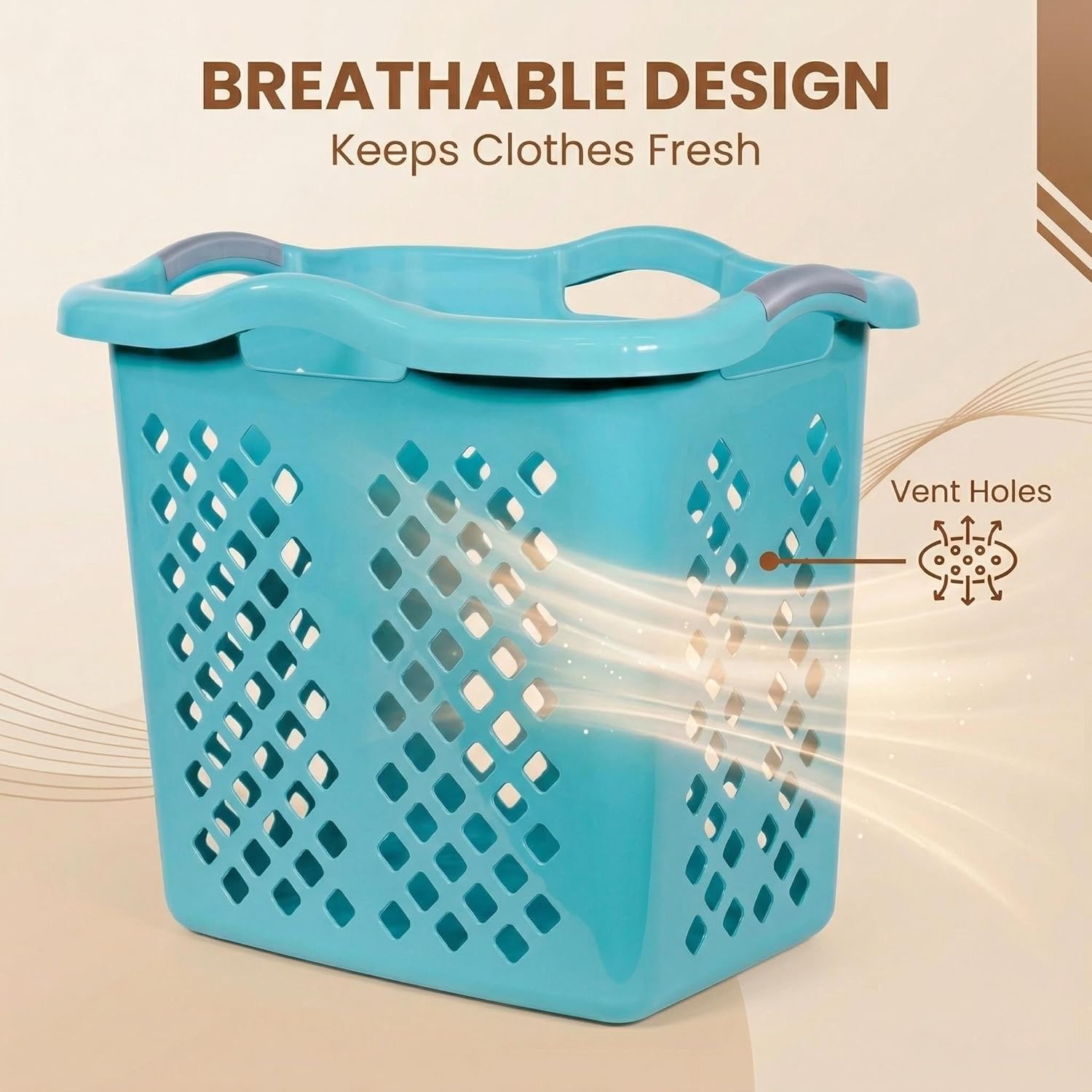 This laundry basket is made of thick and durable plastic and is specifically designed for daily use. Whether you are carrying a full basket of clothes or bed sheets, or storing already folded and clean garments, you can rest assured that it will not bend or break. The breathable open-hole design ensures good air circulation, so the clothes can remain fresh. The two comfortable handles fit your hand shape, allowing you to easily carry it from the bathroom to the laundry room, even when it is full. Moreover, after purchasing 2-Pack, you can separate light and dark-colored clothes in advance, or place one set in the bedroom and another in the bathroom, achieving seamless organization. Its simple design complements any home decoration style, whether it's a modern apartment or a cozy family home. Its stackable shape means it won't occupy extra space even when not in use. Whether you are a busy parent, a student in a dormitory, or a tenant who wants to make the most of space, this plastic laundry basket is a reliable and stylish choice to meet all your laundry and storage needs.