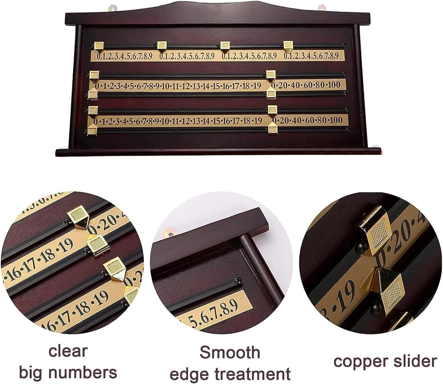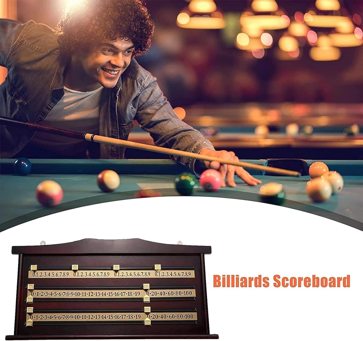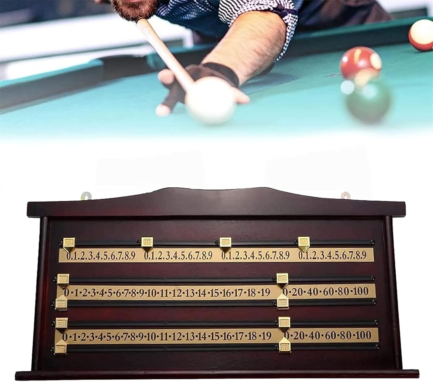 Features: 1.The item is a plastic pool ball game scoreboard for billiard playing supplies 2.Clear number pattern and wall mounted screws design, easy install and practical 3.Ideal for most practice or professional game supplies 4.Perfect for use in a pool hall and home game room Specification: Name: Billiard Scoreboard Material: Wooden Slider: Brass Guide Rail: copper Size: 70x35.5cm/27.5x13.9in Number of people: 2-5 people Packing list: 1 x Billiard Scoreboard Note: Light shooting and different displays may cause the color of the item in the picture a little different from the real thing. The measurement allowed error is +/- 1-3cm. Only the above package content, other products are not included
