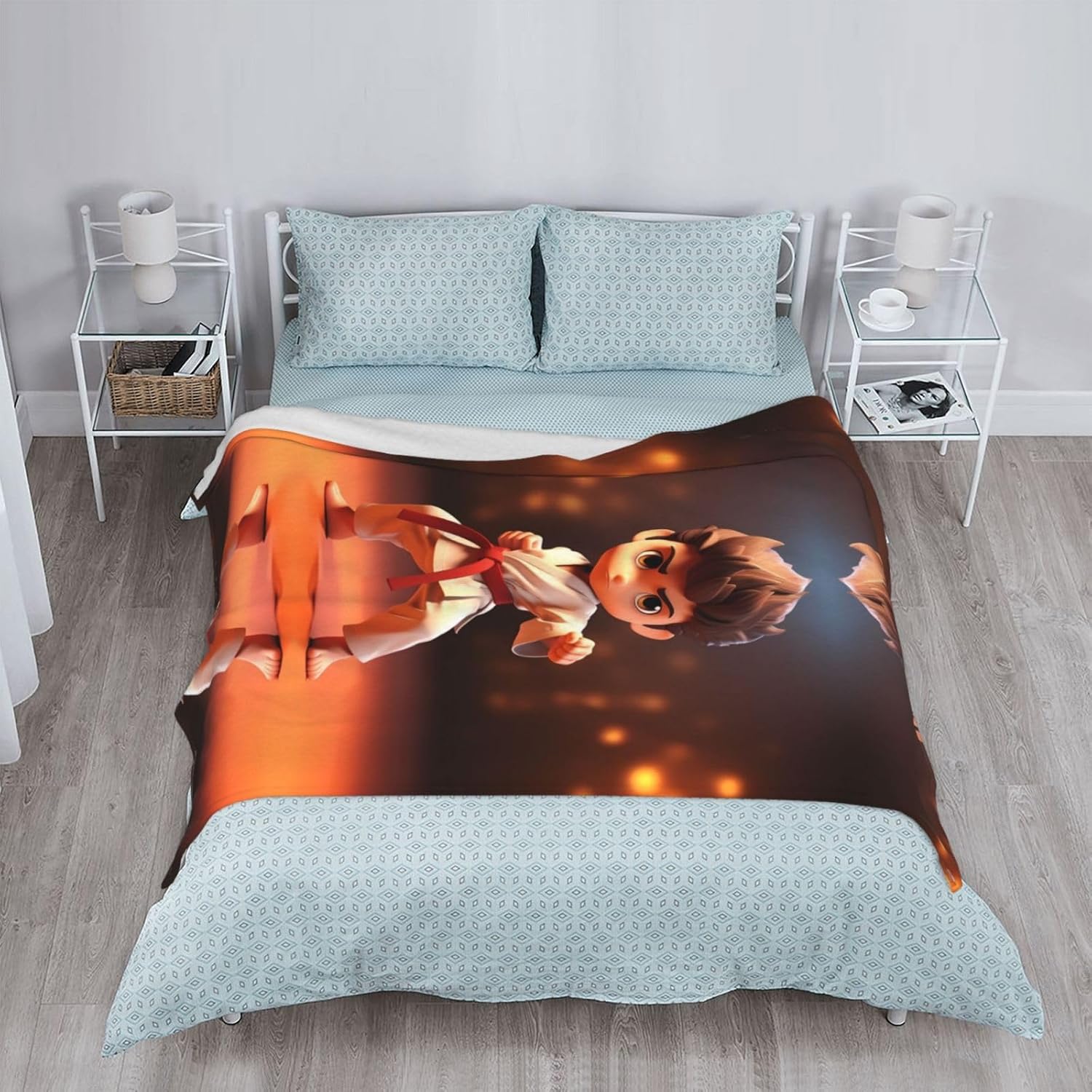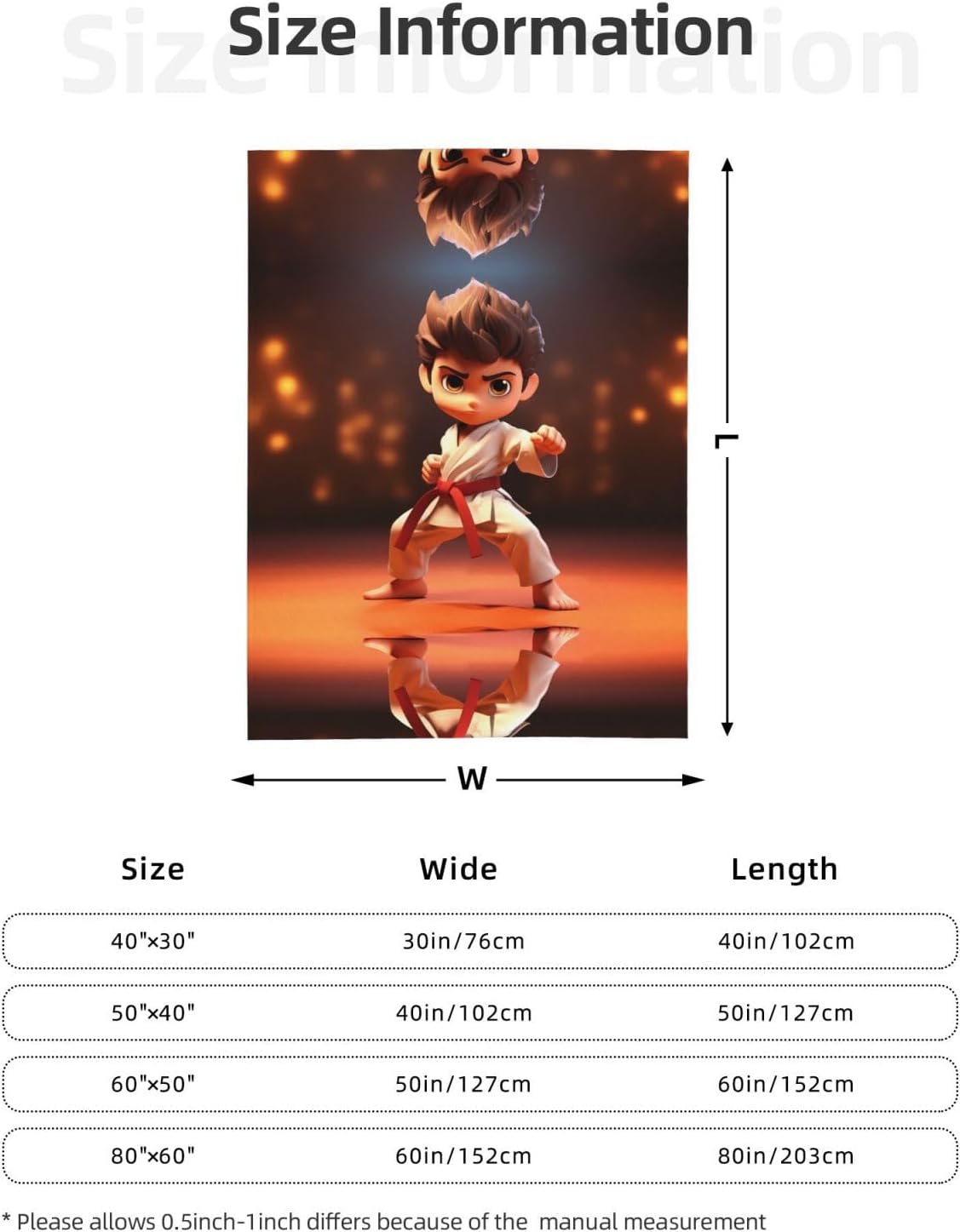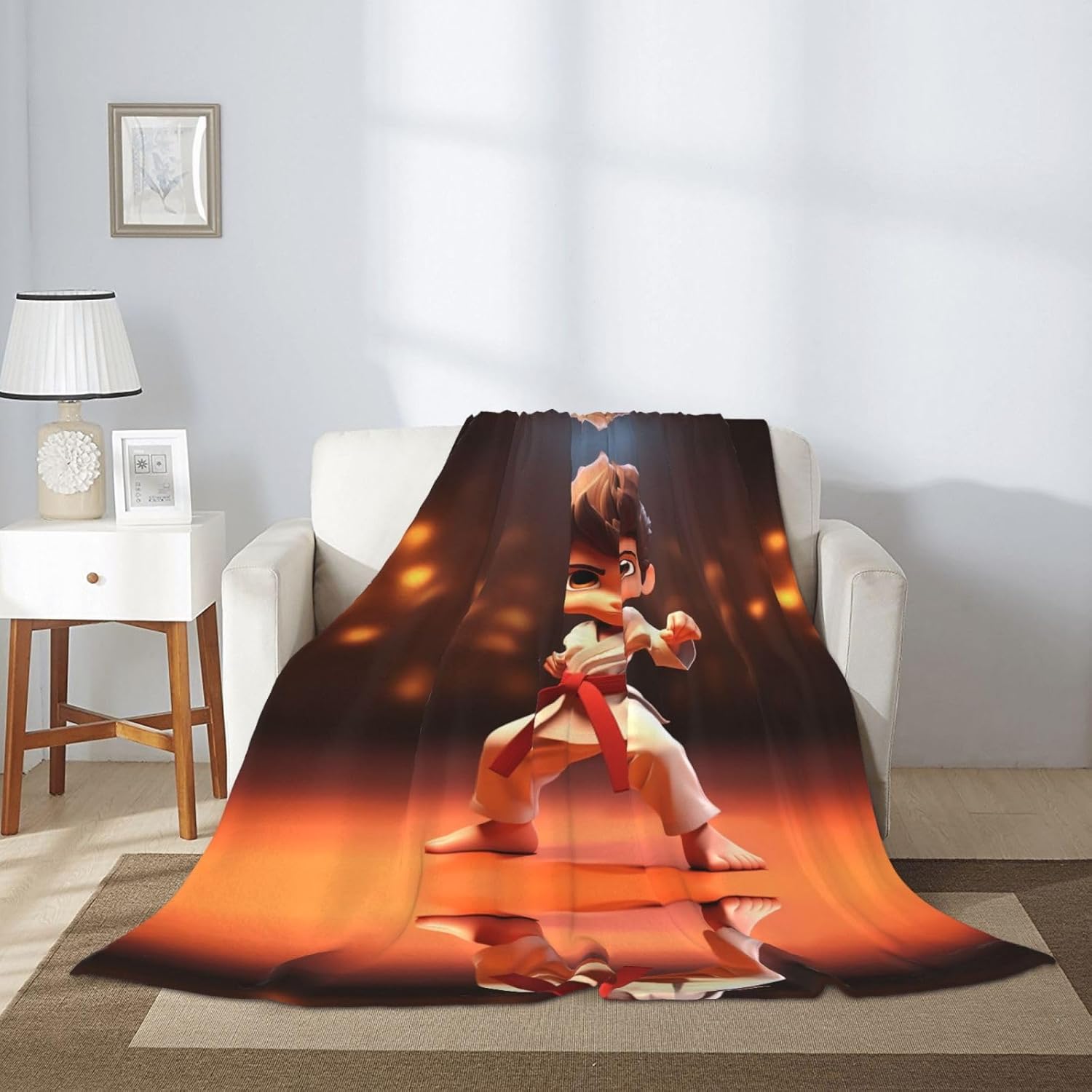 YYHWHJDE cartoon karate pattern thicken flannel blanket 80"x60" :Material description : 100% polyesterProduct Performance : Made of thickened flannel, lightweight, warm and durable. Super soft and feels great in hand. Completely resistant to shrinkage and wrinkling. Our blankets have a velvety texture, are very soft to the touch, are anti-pilling, anti-wrinkle, hypoallergenic, and lint-free.Applicable Scenes : Suitable for bed, sofa, camping or traveling, very warm. A perfect gift for your family and friends.Washing Instructions : You can machine wash by hand, tumble dry at low temperature, do not use bleach.