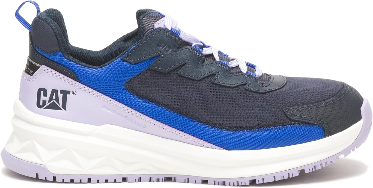 Keep up with the demands of the busy workday in the Caterpillar Streamline Runner CCT EH shoes. Lace-up closure offers a secure fit. Carbon composite safety toe meets or exceeds ASTM F2413-18 I/C Impact and Compression and Electrical Hazard (EH) standards. Pull tabs in front and back. Padded tongue and collar. ReVive footbed is built with engineered comfort for a contoured fit and support underfoot. Branding on heel counter. Textile upper. Man-made lining. Removable man-made insole. Slip-resistant, industrial grade rubber sole is built with unbeatable traction to reduce the risk of slips and falls and meets ASTM F2913-19/ASTM F3445-21 standards. Style Number: P91495-001 (Black/Pink) P91600-100 (Bright White/Blue) P91498-001 (Bright White/Black).