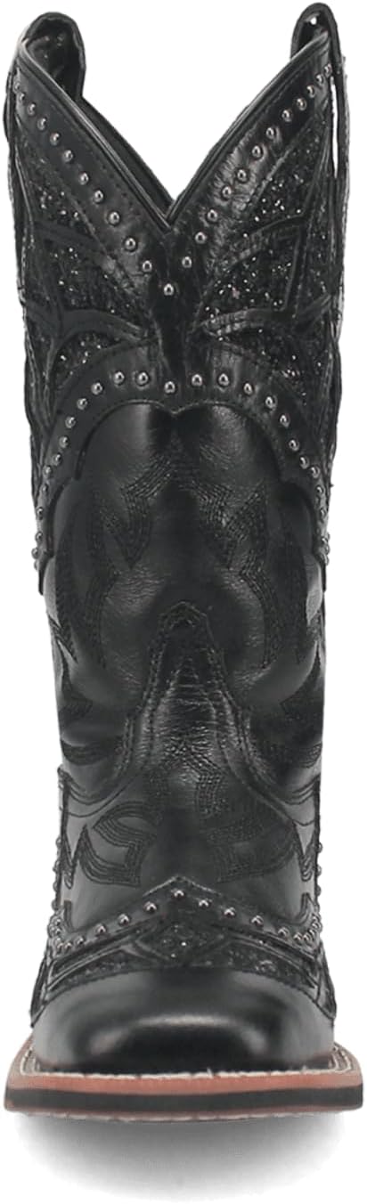 You'll want to spend Eternity in these sparkling cowgirl boots | Leather upper with sequin underlays | Approx. 11 inch shaft with a 10 inch circumference | Lightweight rubber outsole | Broad square toe | Stitching detail | Approx. 1 inch Stockman heel | Removable footbed