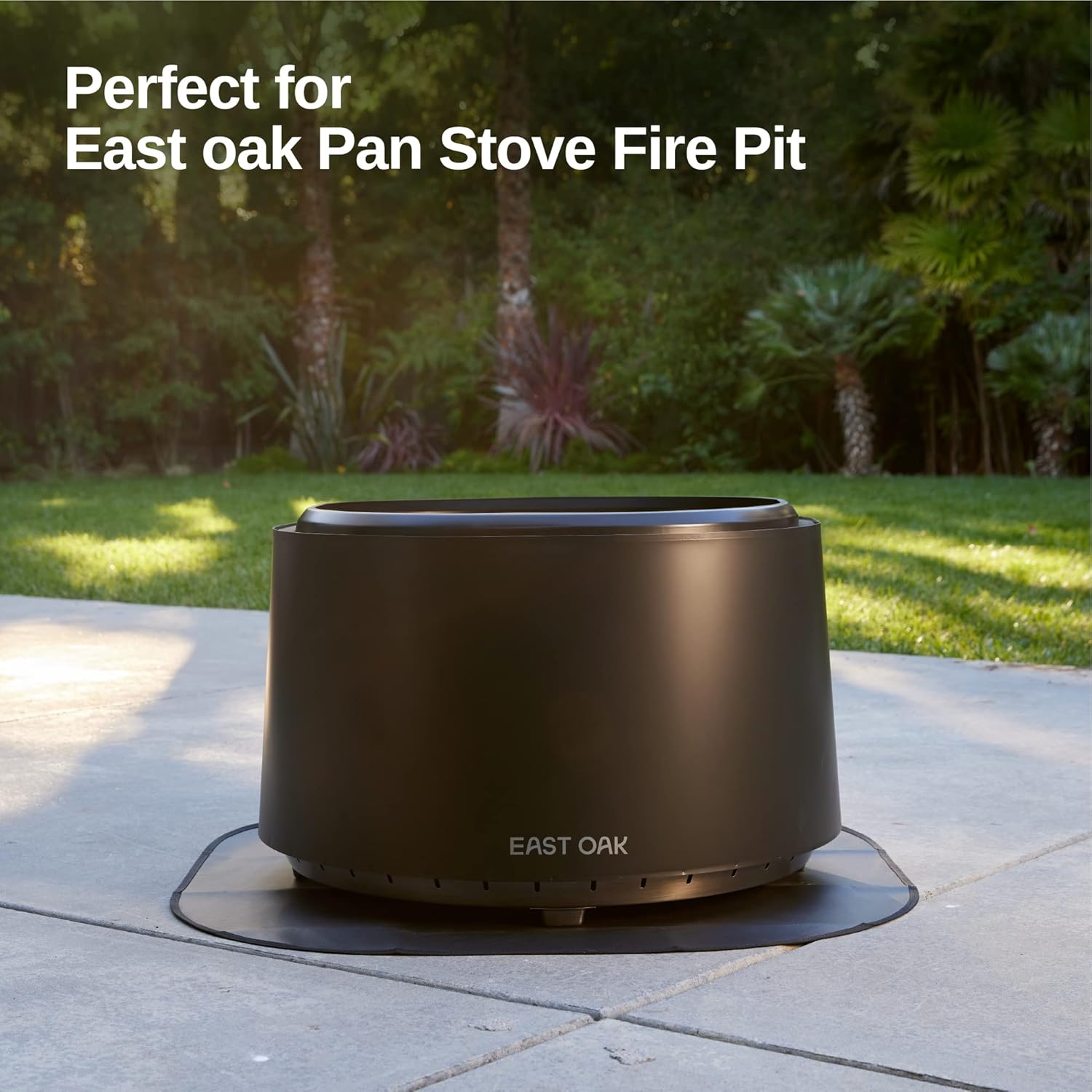 EAST OAK Pan Stove Fire Pit 29", Smokeless Fire Pits for Outside Large Wood Burning Firepit with Poker & Removable Ash Pan, Portable Bonfire Pit for Patio, Backyard, Stainless Steel, Chisel SteelSpecifications: Base Size: 29.53x29.53 inch Upper Opening: 27x27 inch Height: 17.97 inch Weight:33.07 lbs Material: 304 Stainless Steel Color: Stainless Steel Applicable Number of People: More than 8 people Features: 29" fire pit, Low somke, removable ash tray, fire poker, secondary combustion flame Manufacturer Warranty: Three-Year Limited Warning/Warm Tips: • This product is for outdoor use only, do not use the bonfire pit indoors. • To avoid any burns or injuries, do not touch this stove under any circumstances until the fire is completely out and the surfaces have fully cooled down. • DO NOT allow children to operate this fire pit. Keep children and pets away from the stove when it is in use. • In non-emergency situations, do not use emergency cooling methods (such as a fire extinguisher or cold water) before the product is completely cooled. This can cause the product to deform. • Make sure all flammable materials or items are at least 6 feet away from the fire pit. • DO NOT use this product under a covered porch, patio roof, low hanging branches, trellis, or overhangs of any kind.EAST OAK 36in Fire Pit Mat for Low Smoke Outdoor Firepit Wood Burning Campfire,Portable Camping Stove, Charcoal Grills, Wood Pellet Smokers, for Patio, Backyard, Deck, Garden and Poolside Use, BlackEAST OAK 36in Fire Pit Mat for Low Smoke Outdoor Firepit Wood Burning Campfire,Portable Camping Stove, Charcoal Grills, Wood Pellet Smokers, for Patio, Backyard, Deck, Garden and Poolside Use, Black