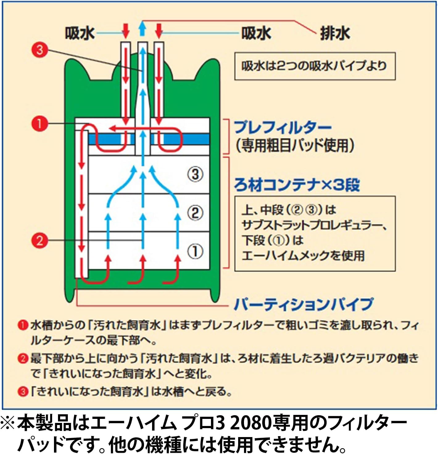 Filter pad for Aheim Professional 3e 2080. Not only does it remove debris as a physical filter, it also works as a biological agent. (For freshwater and saltwater)