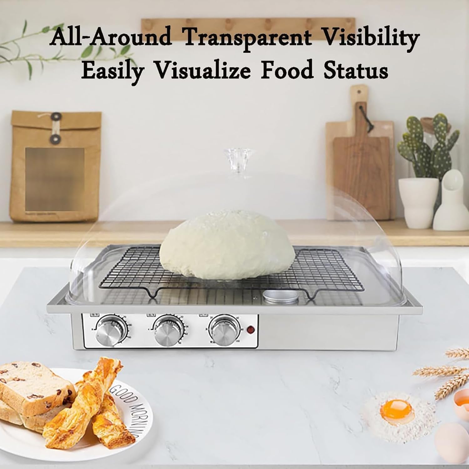Features:1.Control knob, , simple and clear2.Stainless steel body3.Highly transparent PC cover, good sealing and easy to observeSpecificationName:Dough ProoferMaterial: stainless steelCover material: PCPower: 140W, 200W, 250WSize: 410*310*280mm, 510*360*290mm, 590*430*300mmProduct List1 x fermentation incubator