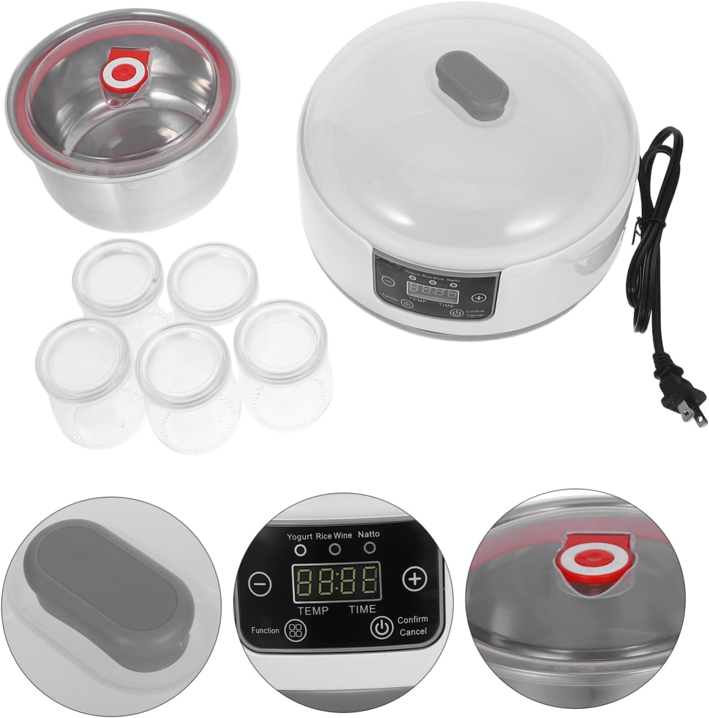 Package List 1 x yogurt machine (including power cord) 1 x instruction manual 5 x bottles 100ml Characteristics -Color:White yogurt maker -Clear display: the lcd screen offers an easytoread interface, making the yogurtmaking process yogurt making machine - yogurt delight: ideal for use, this yogurt maker lets you enjoy the pleasure of homemade yogurt, enhancing your culinary experience yogurt maker -Material:Stainless steel, Silicone, Rubber, Copper, ABS, Glass stainless steel automatic yogurt maker -Size:7.00X5.50X5.50cm/2.75X2.16X2.16in(Bottle) automatic yoghurt maker - timer: the builtin timer allows you to set fermentation to , ensuring convenience and precision adjustable time yogurt maker -Size:15.00X15.00X8.50cm/5.89X5.89X3.34in(Inner tank) stainless steel yogurt machine -Size:24.00X24.00X21.00cm/9.43X9.43X8.25in(Host) yogurt maker with timer - : advanced temperature technology have fermentation for delicious fermentary machine -Generous capacity: with a 1.2 l capacity, this yogurt maker is for family use, catering to everyone's taste yogurt maker applianceGoods Informationelectric yogurt maker machine The yogurt maker features a durable construction with a modern design, ensuring performance and aesthetic appeal.yogurt maker for beginners A appliance for health-conscious individuals and families.stainless steel yogurt machine Its temperature system make sure consistent results, while the timer function supports extended fermentation for thicker, richer textures