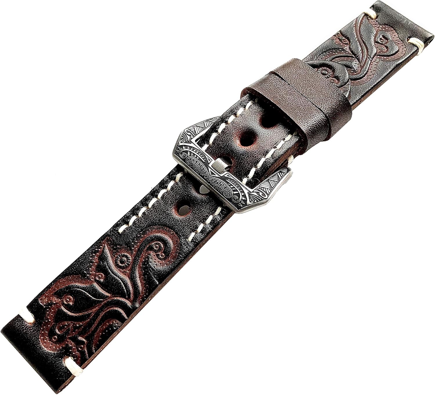 Product Description:<><> Dimensions of the Band: Long Strap Length 5.11" - 130mm / Short Strap Length 3.14" - 80mm / Buckle 0.78" - 20mm / Band Thickness 3mm<><>Premium Quality Genuine Leather and Precisely Crafted. The design and colors are chosen to provide you with comfort, self esteem and class. For the painting of this premium leather, natural coloring was used from fruits and vegetables with a characteristic warm tone, which creates peace for you or the people around you. We believe and are sure that everything created with love, will and patience is a positive energy source. Which charges and recharges us constantly with good positive energy.<><> Cleaning: Because this band is made from natural materials, it will mold to your wrist and develop an aged patina finish over time. The leather band is not sweat or water-resistant. We recommend limited to no contact with moisture to reduce discoloration-damage to the band. If the band gets wet or dirty we recommend using a non-abrasive, lint-free cloth. If needed, you can lightly dampen the cloth with water and let the band air dry. Leather can dry out, especially when exposed to water. We recommend a monthly application of a leather conditioner to keep your leather protected and moisturized. Cleaning can be done with a slightly moistened cloth. Enjoy fresh new looks with your accessories and let time go by in style! Smartwatch is NOT Included !!