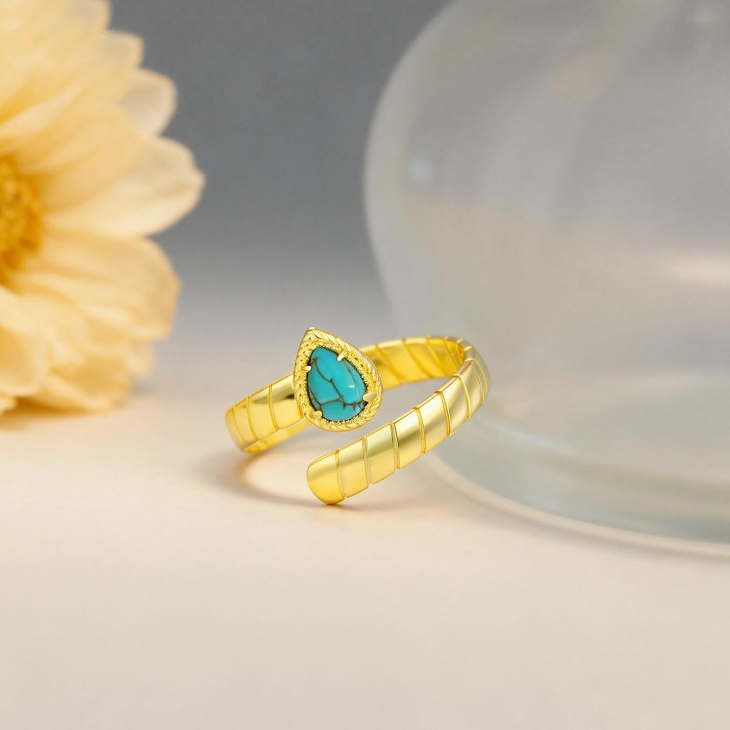 This golden turquoise open ring is designed based on natural inspiration and western style. The turquoise symbolizes protection, luck and inner balance, conveying the spiritual power of connecting with nature. The simple yet layered design showcases the independent and gentle yet powerful temperament of women, making it suitable for daily wear.