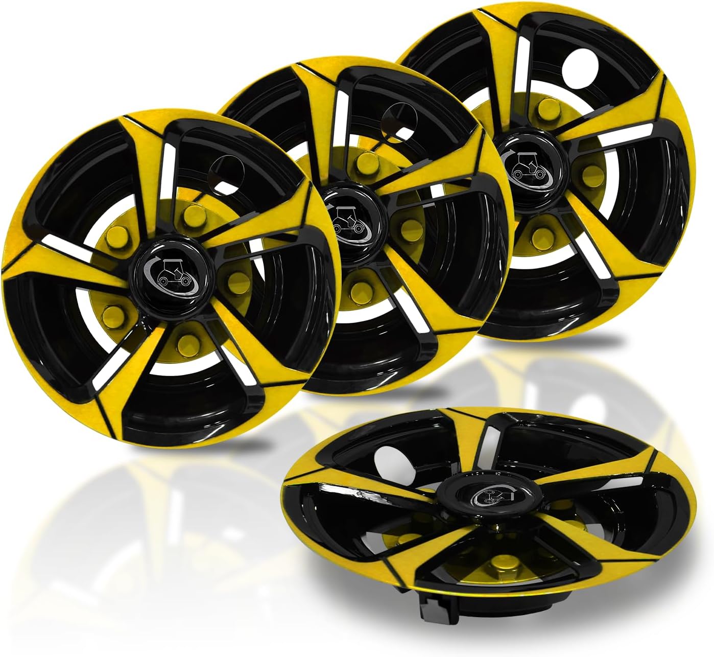 Product Description Brand: YUWEIDG0769 Model: Golf Cart Hubcaps (universal for all seasons) Belongs To The Series: golf cart accessories- wheel accessories & parts- wheel cover& wheel center caps Apply For: Golf cart wheel cover compatible for Ezgo, Yamaha and Club Car Precedent/DS 8-inch wheels golf carts (DOES NOT FIT EZGO RXV Carts) Dimension: 9.25*1.96 inch , you can find the more size detail from description picture Material: Plastic Color: Black&Silver (optional, you also can find the golf cart wheel covers red, blue, black and sliver in our store) Installation Location: Golf Cart Wheels Function: Chrome finish+gloss black improves your golf cart's outlook Package List 1Set* 4Pcs Golf Cart Hub cap 1pc* Manual, 4pcs wheel center caps rims stickers + 4pcs wheel cover clips Installation & Warranty 1. We will provide installation manual of the golf cart wheel covers to help you to install it , ensure it secured to the rim and just snaps (click into) right in place. (do not need to bend the clips) , just no need over 10min. 2. One month free return, replacement or maintenance if any quality problem within 1 year; 3. If there any issue with it, don't hesitate to contact us via message , and we will response and solve it within 24-48 hour