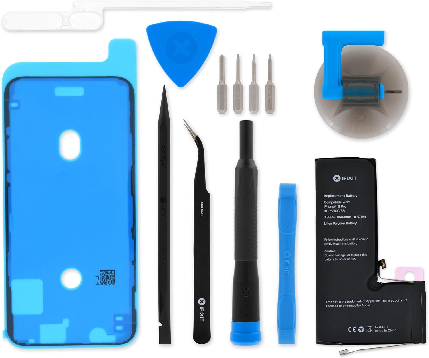 This iPhone 11 replacement battery is what you need to bring your dead iPhone 11 Pro back to life!Tested to confirm there are no cycles on the cell and the capacity is 95% or higher.100% factory tested with a customer return rate of only 1%.Assembled using high quality chipset from Texas Instruments.Spot tested by iFixit staff in San Luis Obispo, CA to ensure consistency of quality and capacity.Battery adhesive is preinstalled to improve the quality of your repair.Battery degradation is an inevitable part of your iPhone 11 Pro's lifespan. Extend the life of your phone with this new replacement battery compatible with iPhone 11 Pro. If your iPhone 11 Pro won't turn on, is stuck in a boot loop, has a "service battery" warning, or simply won't hold a charge, this replacement battery may be what you need to fix it.Kit Includes:New Replacement Battery Compatible with iPhone 11 Pro with Adhesive Strips PreinstalledDisplay Assembly AdhesiveiFixit Opening PickSpudgeriFixit Opening ToolSuction HandleAngled TweezersPlastic DropperPrecision Bit Driver4 mm Precision Bits:Phillips #000Pentalobe P2Tri-point Y000iPhone Standoff BitNote:Additional information on how to safely handle, dispose of, and calibrate your battery can be found in the FAQs below.This part is compatible with iPhone 11 Pro.