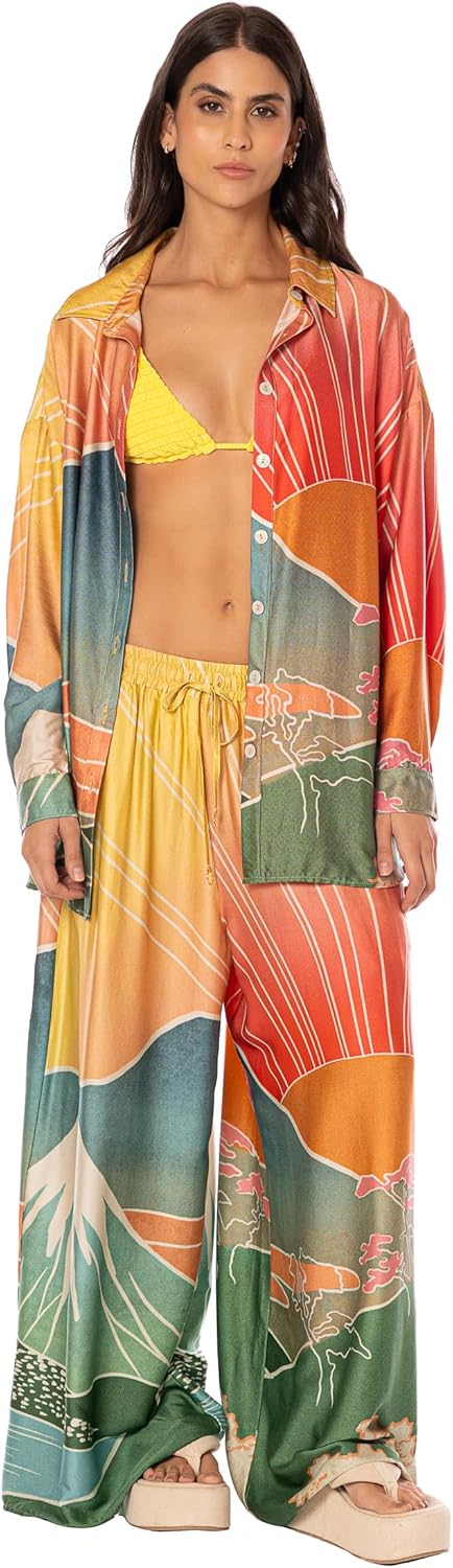 It's pretty tough to avoid being obsessed with our new Aloha View print. The Ophelia high-waisted, wide-legged summer pants show off the hues of summer that make your imagination run wild! And, you can expect the perfect Maaji details that set us apart.