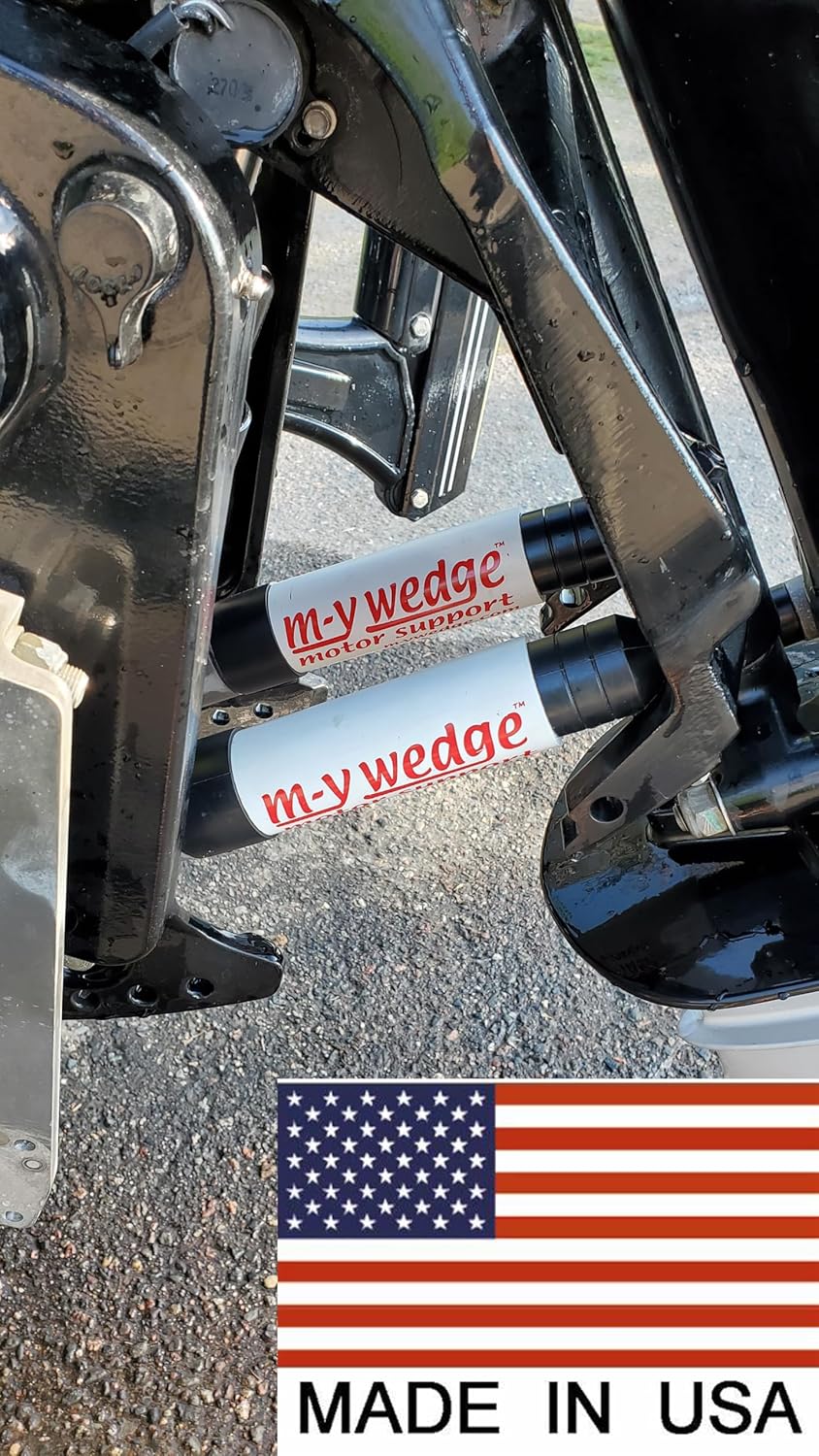 Eliminate trailer shock with a m-y wedge motor support. This innovative outboard motor accessory forms a stable, cushioned platform that makes it safe and easy to trailer your boat. It provides unparalleled support and convenience, solving your outboard motor trailering problems for good. The technology behind the m-y wedge is fiendishly simple. Constructed from EPDM rubber and high-tech plastic, it simply fits over the outboard’s trim/tilt piston. When the motor meets the rubber as it’s tilted down, it self-centers to form a cushioned stable platform that seals on both ends for safe, dependable trailering at the correct height and eliminates “trailer shock.” Works on: Mercury outboards 135 hp–300 hp. Yamaha (plus new SHO) outboards 115 hp–350 hp. Honda outboards 90 hp–300 hp. Evinrude outboards 150 hp–300 hp (if you drill the hole in the m-y wedge bigger) , except Generation 2. Johnson four-stroke outboards 150 hp–300 hp, V6 4-stroke. Suzuki four-stroke outboards DF140 to DF350 hp. If the motor has a trim limit set, the motor wont trim high enough to accomadate the m-y wedge. Three ram systems only, like the one in the second picture. for some reason, some people do not understand that and try to return them.