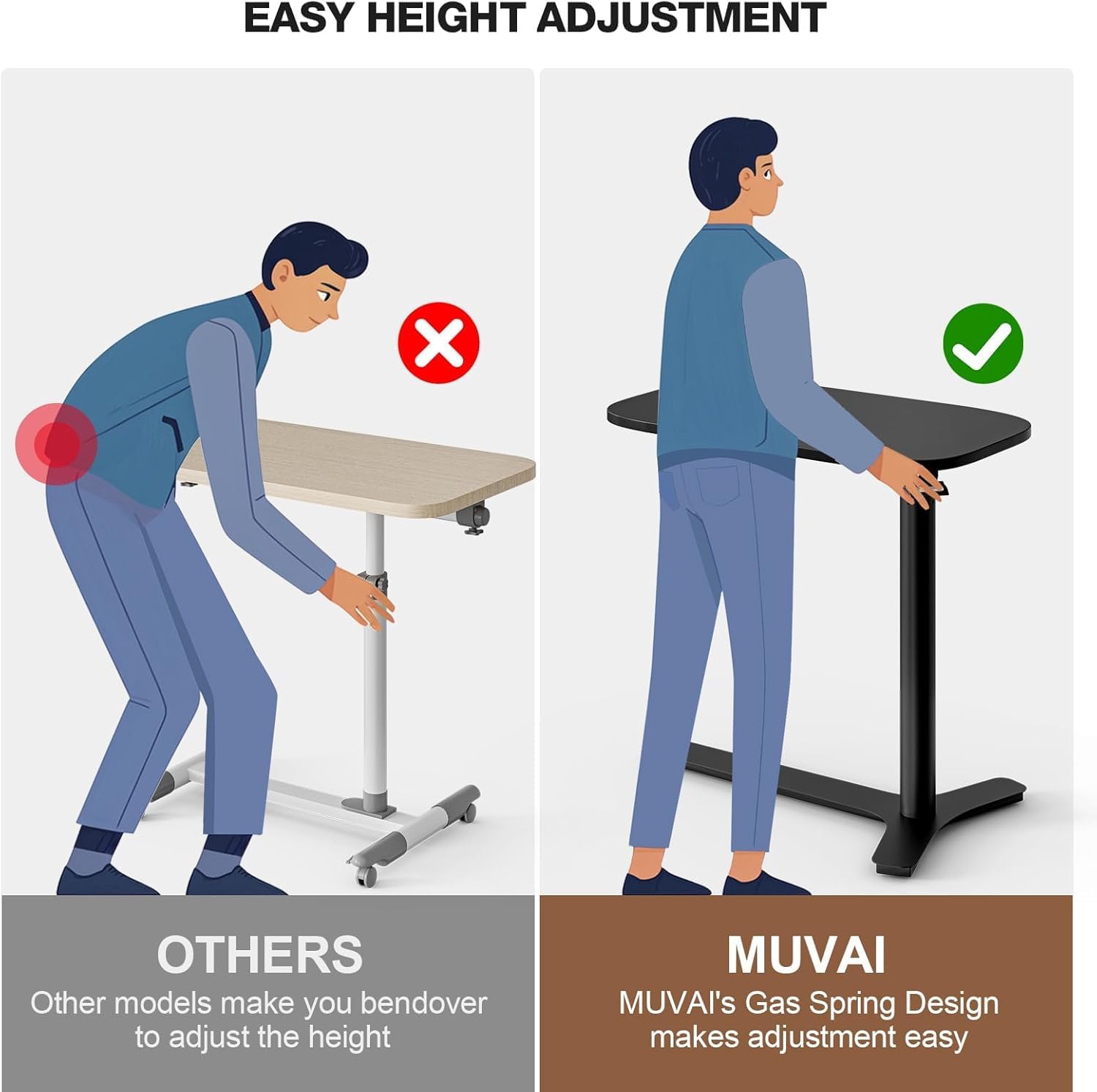 Muvai 30 Inch Large Overbed Table with Wheels Adjustable Height Ideal Bedside Table for Home Medical Use - Rolling Table for Hospital Versatile Bedside, Lap Desk, Laptop Stand,