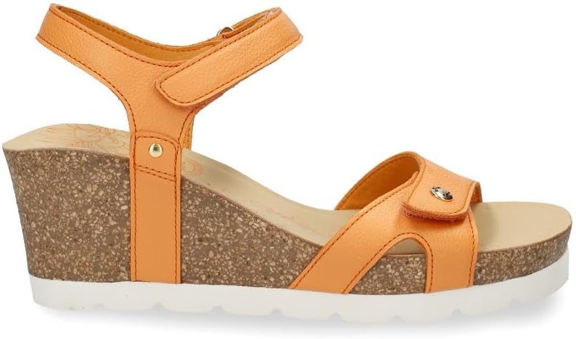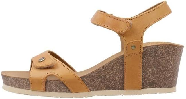 Wedge sandals. Velcro Closure. Ochre Nappa Leather. Leather lining. Anatomical insole. Lightweight, flexible, strong and non-slip EVA rubber sole. Made in Spain
