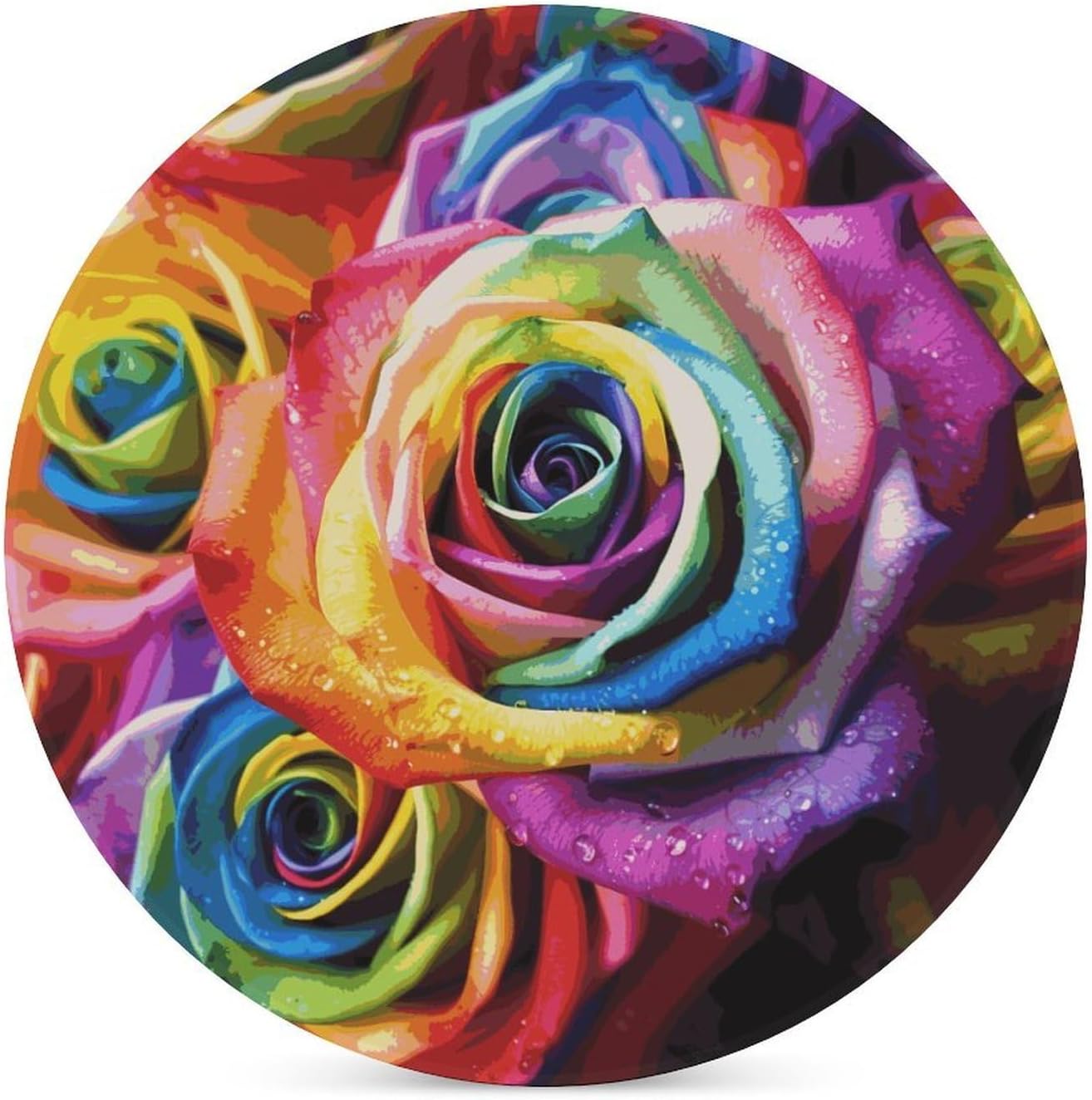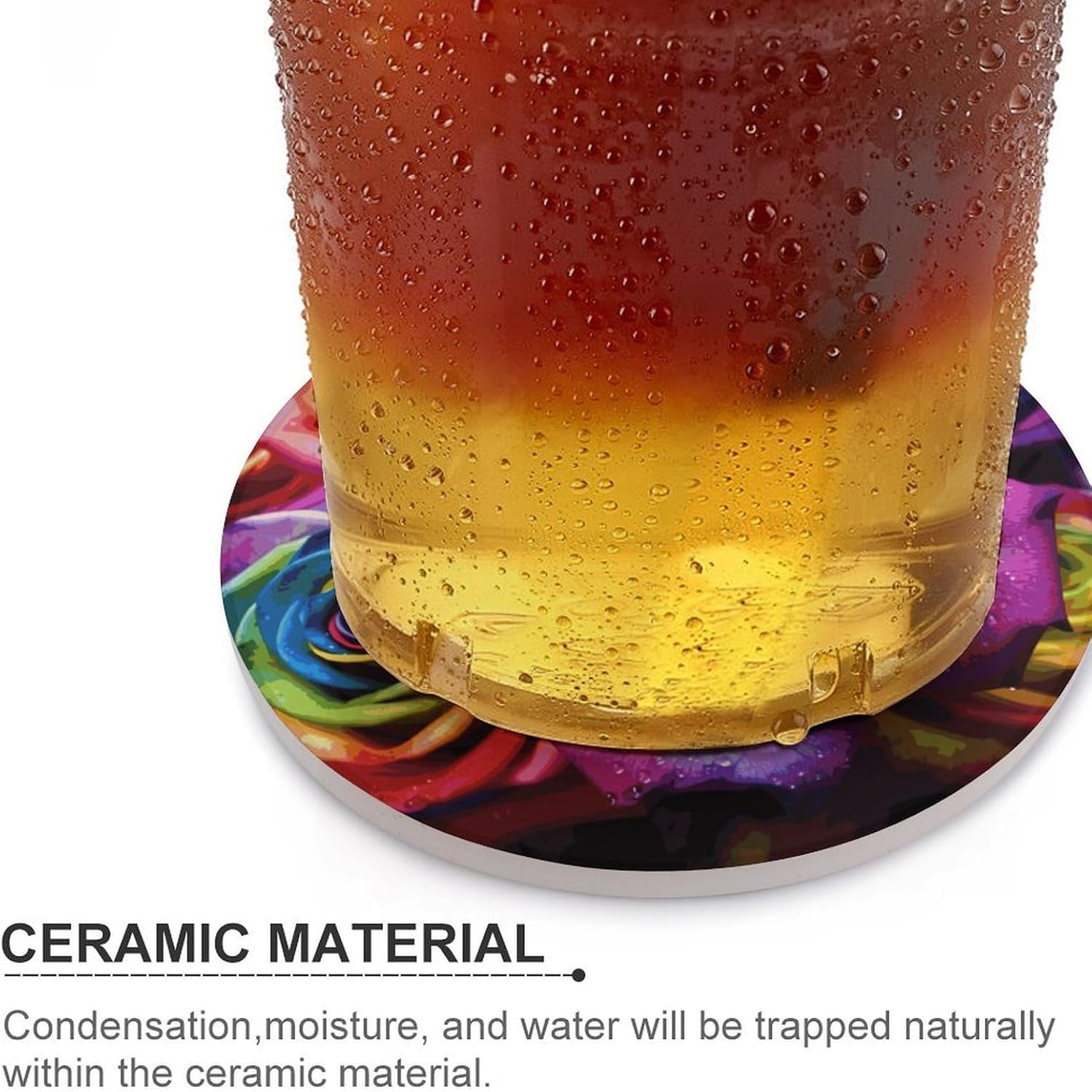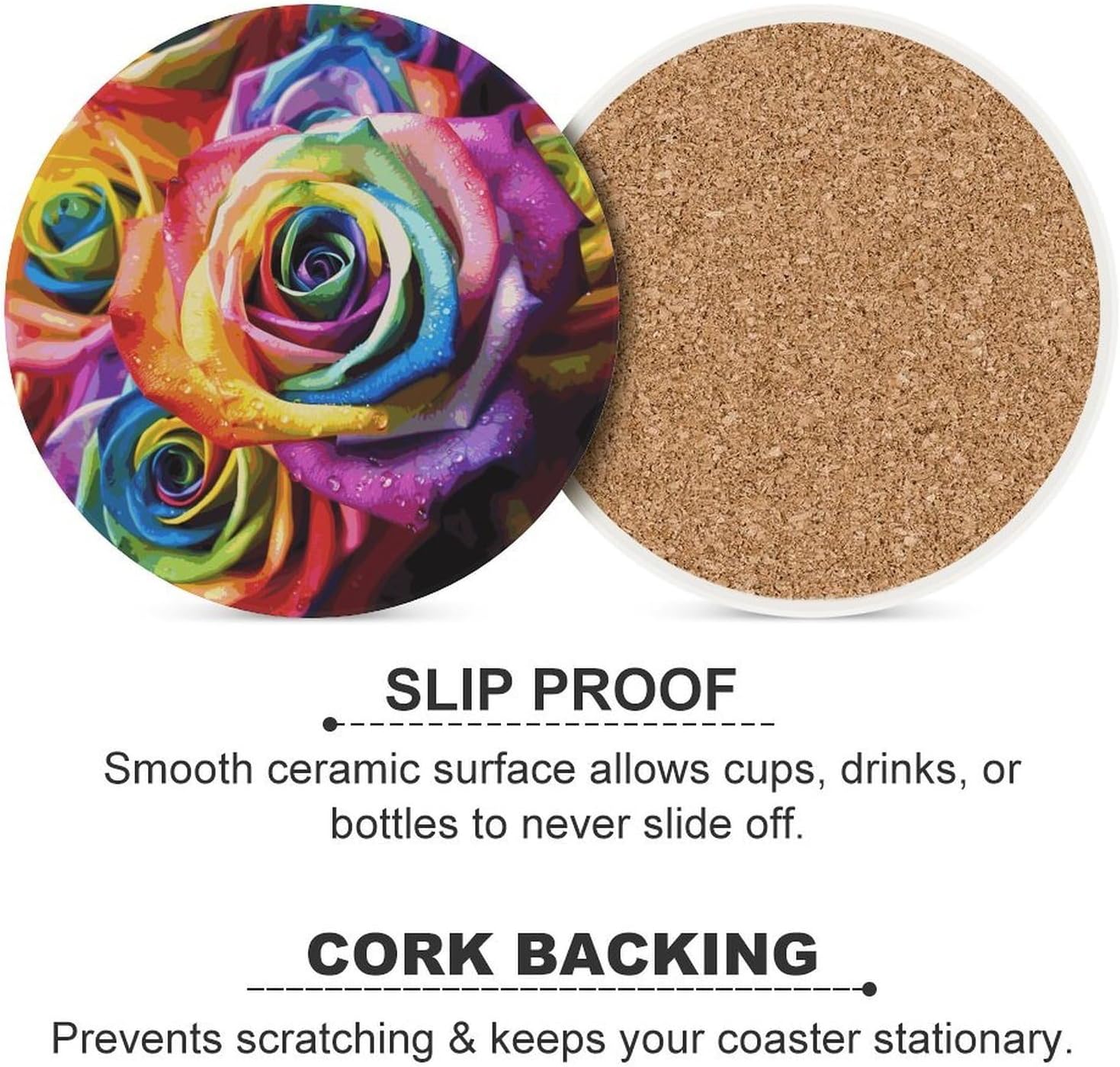 Rainbow Rose Coasters Round Coasters Set Ceramic Stone Coaster with Cork Base Coffee Cup Beverage Cup Mat Cute Funny Table Drinks Coaster for Mugs and Cups Office Kitchen