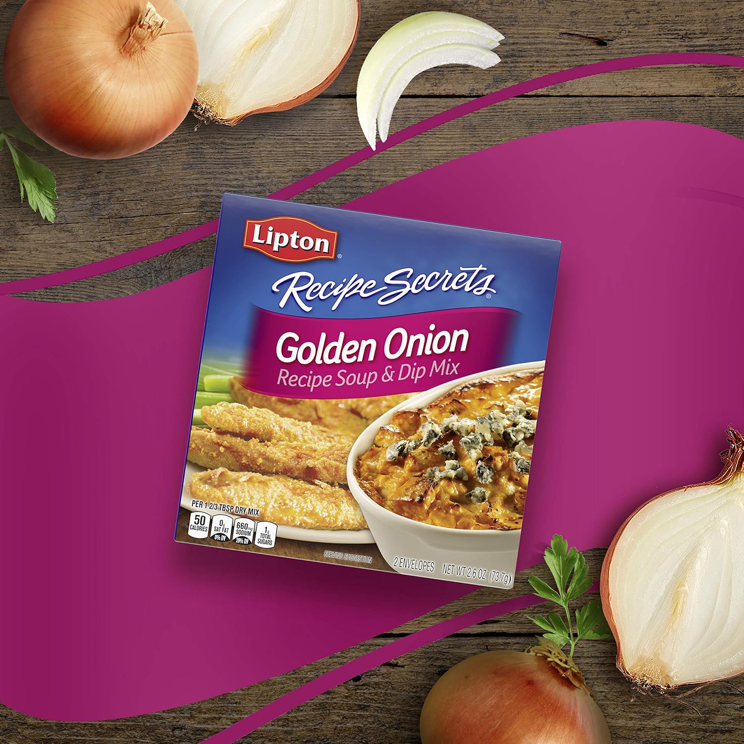 Lipton Recipe Secrets Golden Onion Soup and Dip Mix has a subtle, classic onion taste. Our Golden Onion Dry Soup Mix is your seasoning secret for flavorful family meals. Add it to everything—from vegetables and chicken to pork, soups and so much more, and watch your family’s eyes light up with every delicious bite. It's also a convenient go-to for any party occasion. For a quick and delicious crowd-pleaser, simply combine this golden onion mix with a few basic ingredients for an instant, delicious appetizer! Our versatile Lipton Recipe Secrets Soup & Dip Mixes are a pantry staple and the secret ingredient to great-tasting recipes of all kinds! With six varieties and endless possibilities, Lipton has a favorite dry soup mix and dip mix for everyone. Come busy nights or unexpected guests, you’ll be ready for anything when you keep Lipton Recipe Secrets on hand. Try them all: Golden Onion, Savory Herb with Garlic, Beefy Onion, Vegetable, Onion Mushroom, and our classic Onion Soup & Dip Mix. Bring the entire family together with Lipton Soups! Lipton Soups have been there for you and your family since 1940. Try our other soothing, satisfying, and delicious Lipton Soup Products. Lipton Soup Secrets and Lipton Cup-a-Soup are delicious instant soups that take just minutes to prepare.