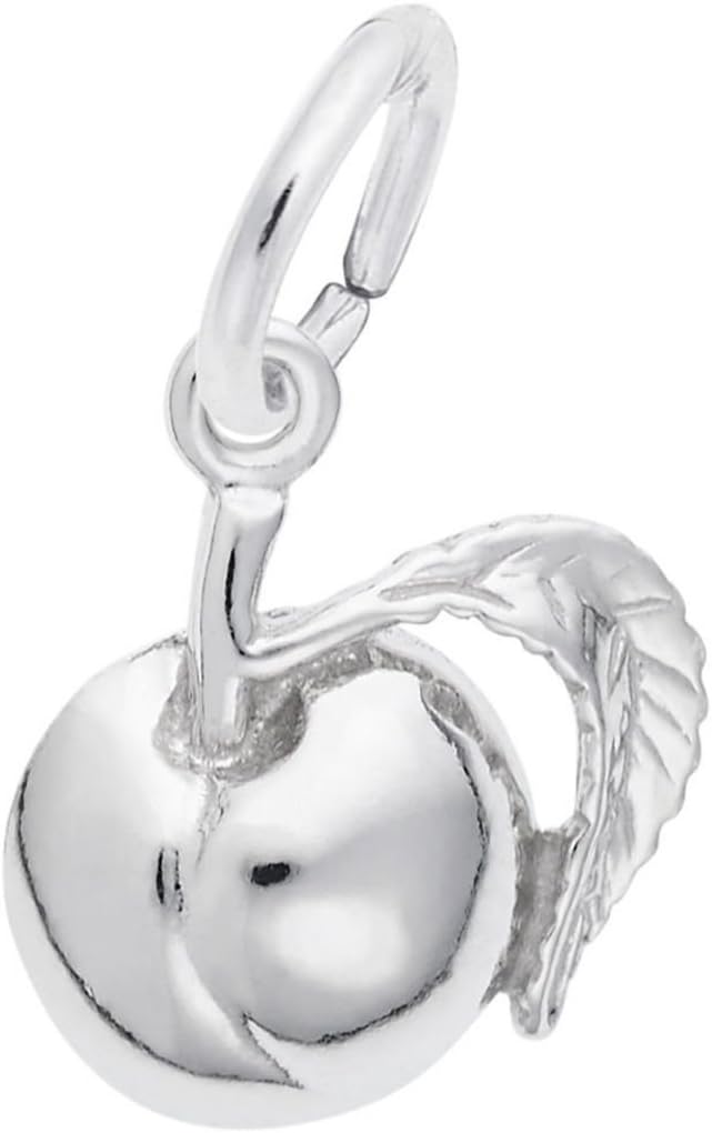 Peach charm by Rembrandt. Measures approximately 0.38 inches x 0.54 inches (9.77mm x 13.76mm). Available in several metals.