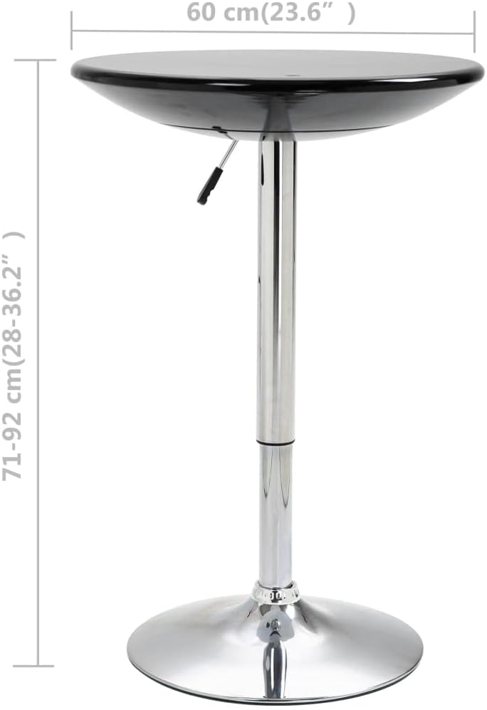 Wall-Mounted L-Shape Bracket Cocktail Table:This bar table is crafted exquisitely to match the elegance of your dining room, kitchen, bar, salon or patio area! The round top is made of ABS which is easy to clean. The chromed steel frame adds to the bar table's stability and sturdiness. Additionally, featuring a height-adjustable mechanism, this table can be adjusted from 75 to 97 cm to accommodate different sitting or standing needs. This table is easy to assemble. Color: BlackMaterial: ABS tabletop + chromed steel frameDimensions: 23.6" x (29.5" - 38.2") (Diameter x H)Base diameter: 17.7"Easy to clean with a damp cloth