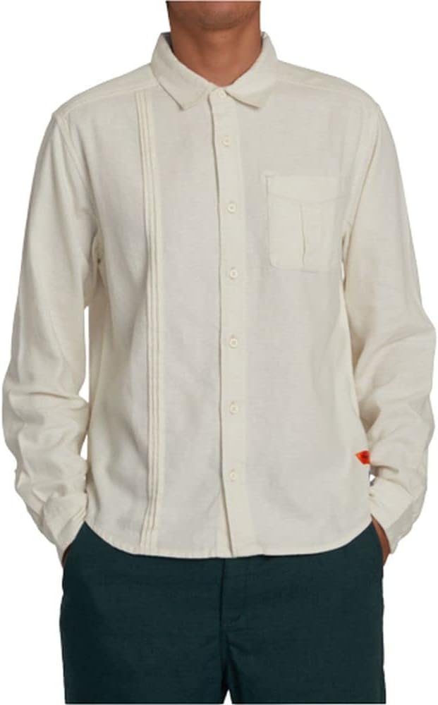 The RVCA Day Shift long sleeved button down features double chest pockets, a camp collar, and a slightly scalloped hem. Made from 100% cotton.