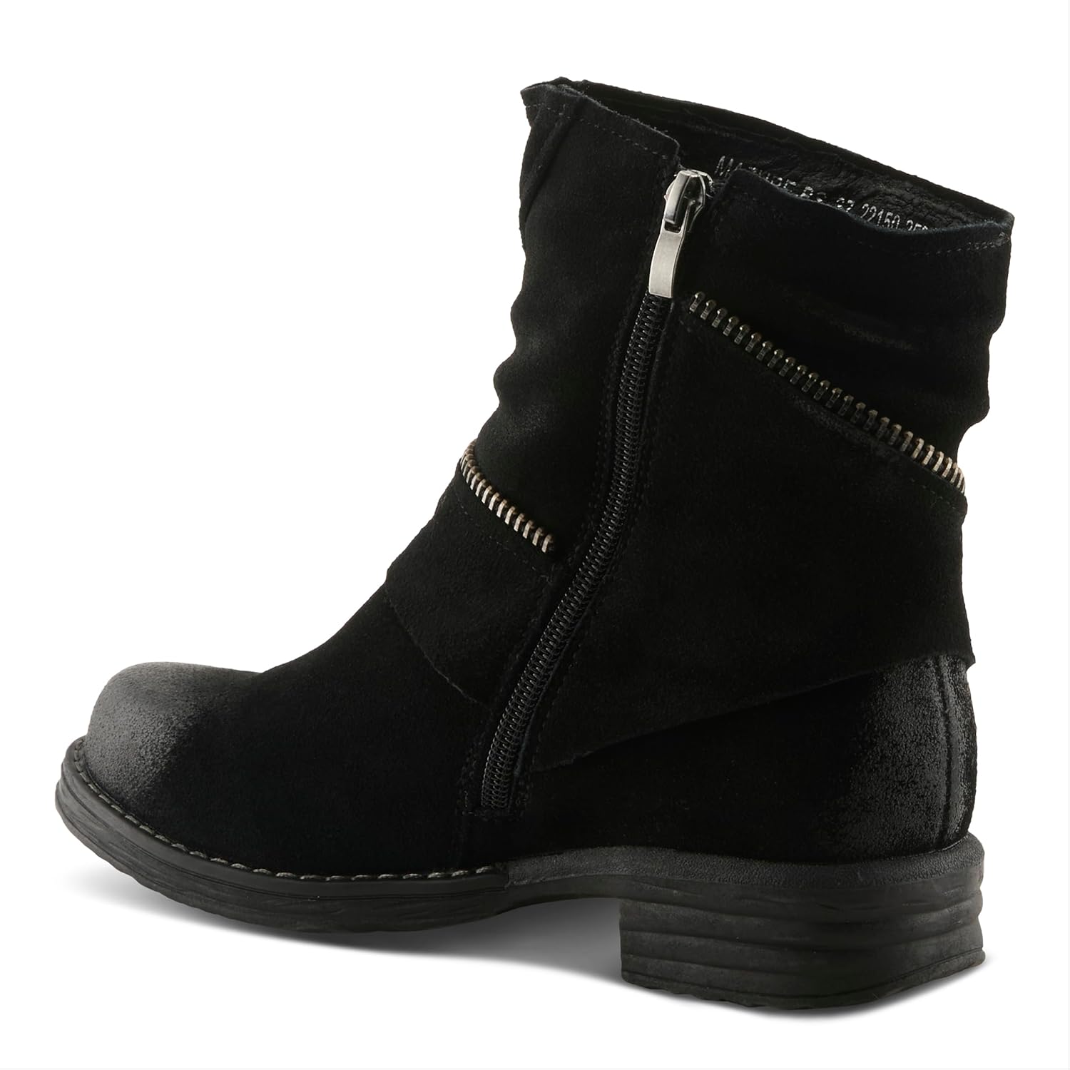 Make a fashion-forward statement with the Spring Step Women’s MAZURE bootie. Crafted from premium distressed suede, this ankle boot features a unique wraparound zipper and soft ruching for an edgy yet feminine silhouette. The cushioned insole and low stacked heel deliver comfort without sacrificing style. Perfect with jeans or dresses, the MAZURE bootie brings bold, rugged-chic charm to any fall wardrobe.