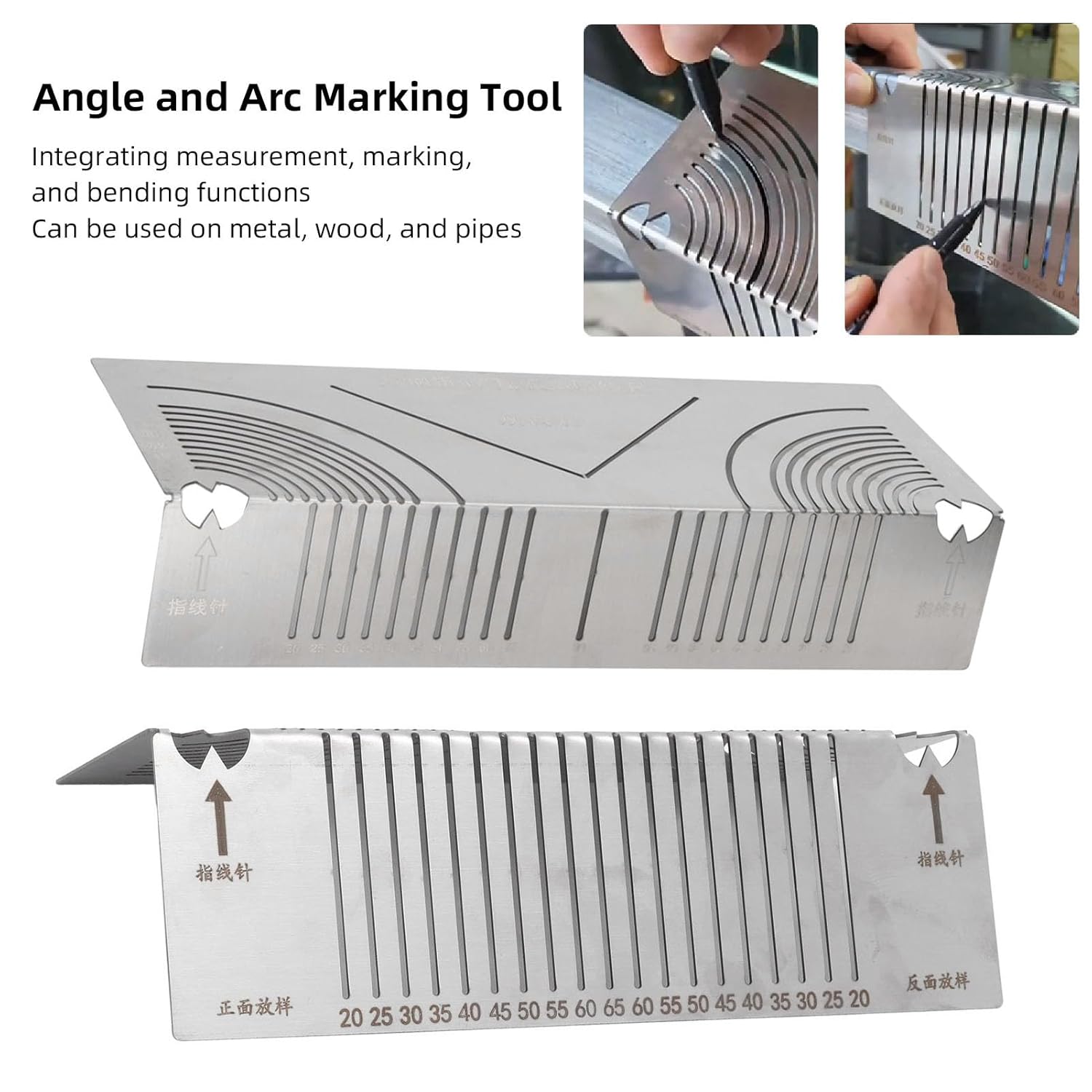Specification:Item Type: Angle and Arc Marking ToolMaterial: Stainless SteelSpecification: 20-65, 20-80How to Use:Directly use.Package List:2 x Angle and Arc Marking Tool