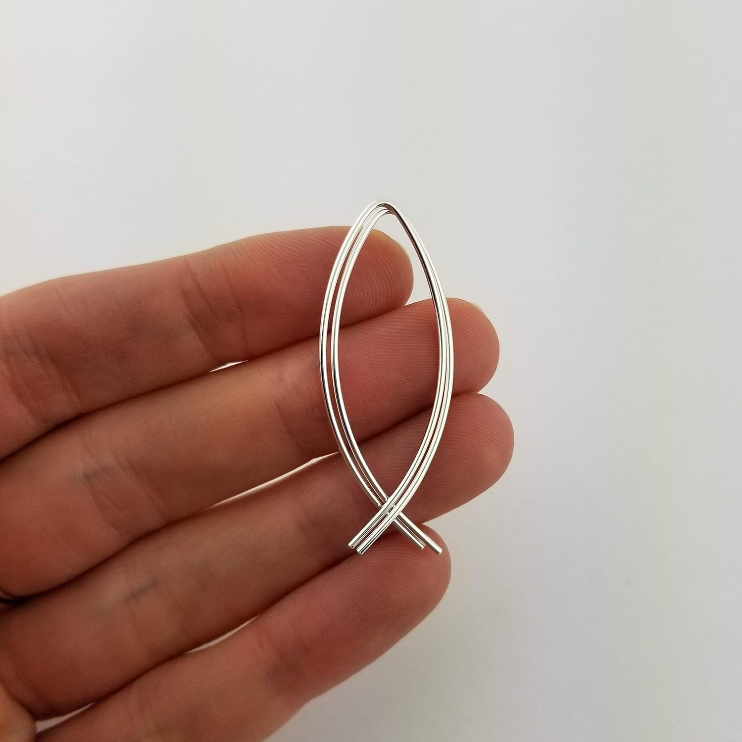 Sterling Silver Symmetrical Crossover Threader Earrings 2" length pictured. Choose from 2" or 3" earring length.The sterling silver wire is 18 gauge (1mm) and is slightly thicker than standard ear wire. While most people have no problem with this size, these earrings may not be the best choice for sensitive ears or new piercings and you may prefer my thin version of this earring. Each piece of jewelry in my shop is individually handcrafted by me in my studio. Due to the nature of handmade items, individual pairs of earrings may vary slightly from the photographs.Thank you for shopping Handmade! To see all jewelry available by Aris Designs, return to my storefront by clicking the ‘Aris Designs Jewelry’ link to the right (desktop users) or below (mobile users).