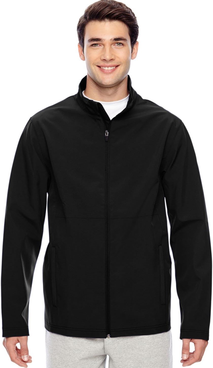 9 oz./yd² / 300 gsm, 96% polyester, 4% spandex bonded with brushed tricot with inner membrane ; 3,000 mm waterproof rating; 1,000 g breathability rating; center front dyed-to-match reverse coil zipper with semi-autolock rubber pull tab and chin guard; zippered front welt pockets; open hem cuffs ; double-needle stitching at hem and cuffs; open hem with drop back bottom