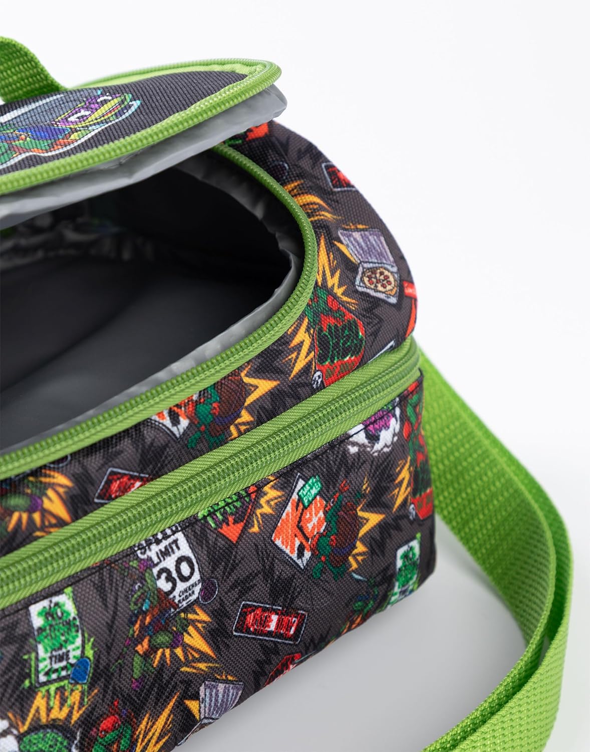 Introducing the Teenage Mutant Ninja Turtles Green Lunch Bag, Lunch Box & Bottle Set, designed specifically for boys who are fans of the iconic TMNT characters. This practical lunch carrier features a zip-up design that ensures your child's lunch stays secure while on the go. The easy-carry handle makes it convenient for little hands to transport their meals to school or on outings. The vibrant green, black, and multicoloured design showcases beloved TMNT characters and includes fun phrases like "Cowabunga!" and "Stop," reflecting the adventurous spirit of the turtles. Made from 100% polyester, this lunch set is durable and easy to clean, making it ideal for everyday use. The set includes a lunch bag, a lunch box, and a bottle, providing everything needed for a complete meal. The bottle holder is a thoughtful addition, ensuring hydration is always within reach. Perfect for back-to-school occasions, this lunch bag set not only meets practical needs but also allows boys to express their love for the Teenage Mutant Ninja Turtles. Whether it's pizza time or a day filled with adventures, this lunch carrier is ready to accompany your child on their daily missions. With its functional design and TMNT theme, this lunch bag set is a must-have for any young fan looking to carry their lunch in style. Get ready for school with the Teenage Mutant Ninja Turtles Green Lunch Bag, Lunch Box & Bottle Set, where every meal can be an adventure.