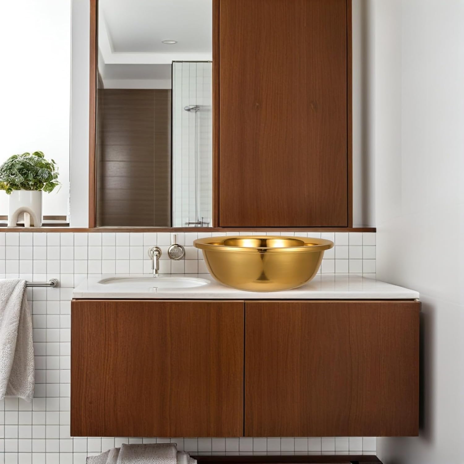 Package List 1 x Stainless Steel Basin Characteristics -Color:Golden -Product Info:Thickened stainless steel basin -Material:Stainless Steel -Size:36.00X36.00X12.00cm/14.15X14.15X4.72in -It can be given as a practical to your friends, the special design makes them meaningful kitchen sink washing basin. -This multifunctional storage basin is having a variety of use methods, to bring convenience to your life dishwashing basin. -The edges are widened, the use process is more convenient, and the collision resistance is stronger stainless wash basin. -With simple design, the Stainless Steel Basin is easy to clean, stable to place, does not occupy space dish washing bowl for kitchen sink. -The edges are smooth, so there is no need to worry about cutting your hands, safe and reliable dish tub for kitchen sink.Goods Descriptionwash basin kitchen sink Our Stainless Steel Basin is great choices for your kitchen.dish washing basin The basin is made of reliable stainless steel material, which has anti-wear and anti-rust functions.dishwashing basin This mixing basin have a wide range of uses, suitable for mixing dough, washing rice, washing vegetables, washing fruits or even making washbasins