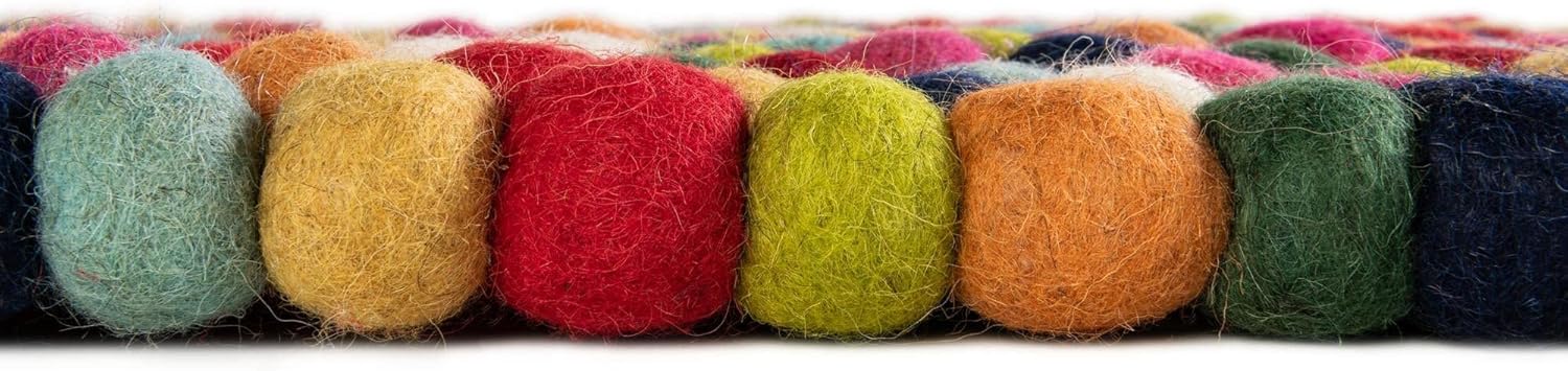 For a luxurious feel and just a bit of whimsy, look no further than our Felt Ball rug collection. Made with 100% natural wool, these rugs provide a soft, squishy surface that you'll love to step as soon as you get out of bed each morning, or beg you to kick your shoes off when you're lounging around in the living room. Available in both a clean, neutral ivory color that exudes a sense of peace and relaxation and a playful multicolor version that instantly brightens any room it's in, the Felt Rug Collection is an attractive showpiece for any style. Sitting at 1 1/2 inches high, the pileless wool construction makes these rugs easy to clean despite their plush feel. Perfect for medium-traffic areas where comfort is a priority like the living room or bedroom.