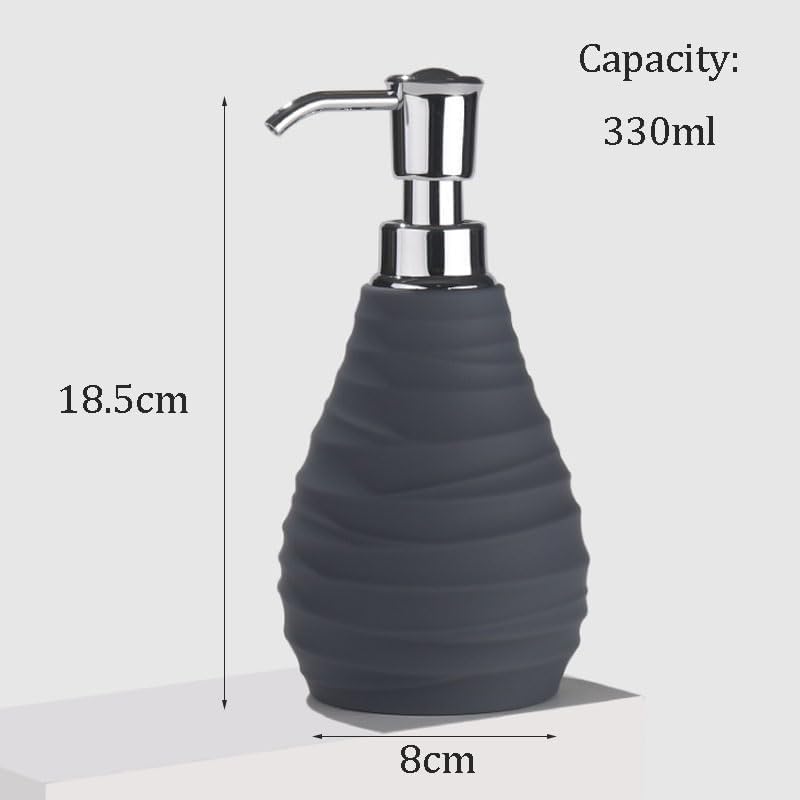 Product category: Soap liquid bottleMaterial: ABS+TPRCapacity: 330mlSize: 8*18.5cmWeight: 220gProcess: Hand grindingApplicable places: Home, restaurantInstallation method: DesktopCategory: Press typePackaging list: 1 Soap Dispenser (excluding pictures of other demonstration products) Warm reminderDue to the differences in displays, the pictures may not reflect the actual colors2. Due to manual measurement, please allow an error of 1-2cm