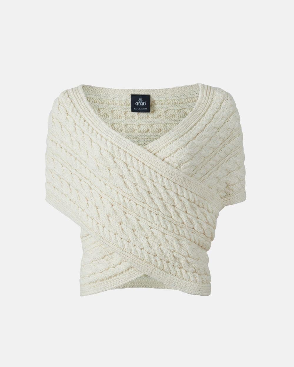 100% MERINO WOOL Crafted from Merino wool, this Cable Cropssover Wrap will cover you up in luxurious warmth that insulates you from the cold with breathability and softness, making it the quintessential piece for fall and winter weather