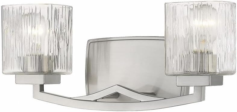 Bring radiance and elegance to a modern bath space with this tastefully designed chrome steel two-light vanity light. Enjoy a gently curved design accent on a stylish frame with a pair of chiseled glass shades.